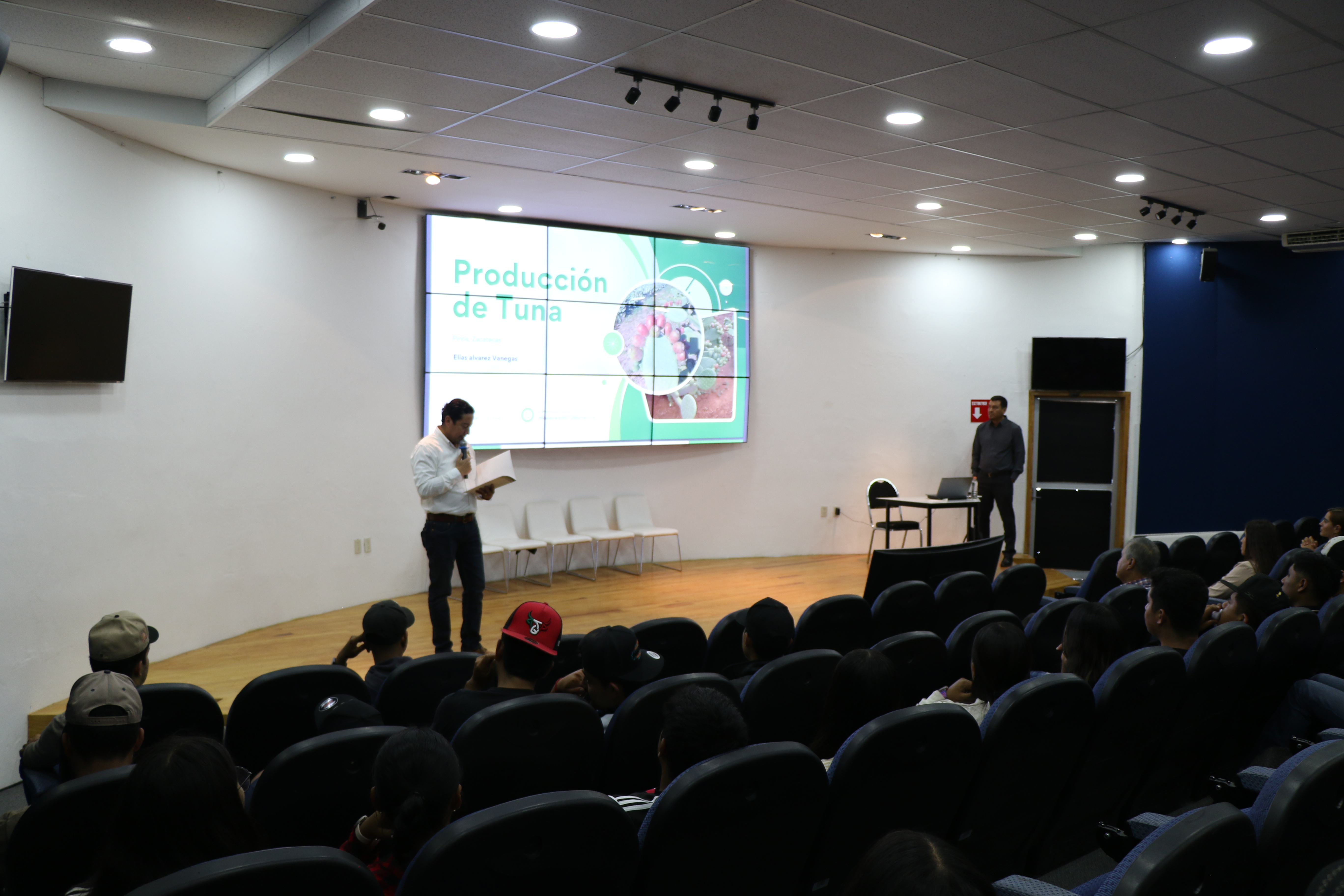 En el encuentro, que reunió a estudiantes y docentes de la carrera, el conferencista compartió su experiencia en el cultivo y aprovechamiento de la tuna, así como en la creación y desarrollo de la empresa BIONOPALtzin, ejemplo de emprendimiento sustentable en el sector agroalimentario.
