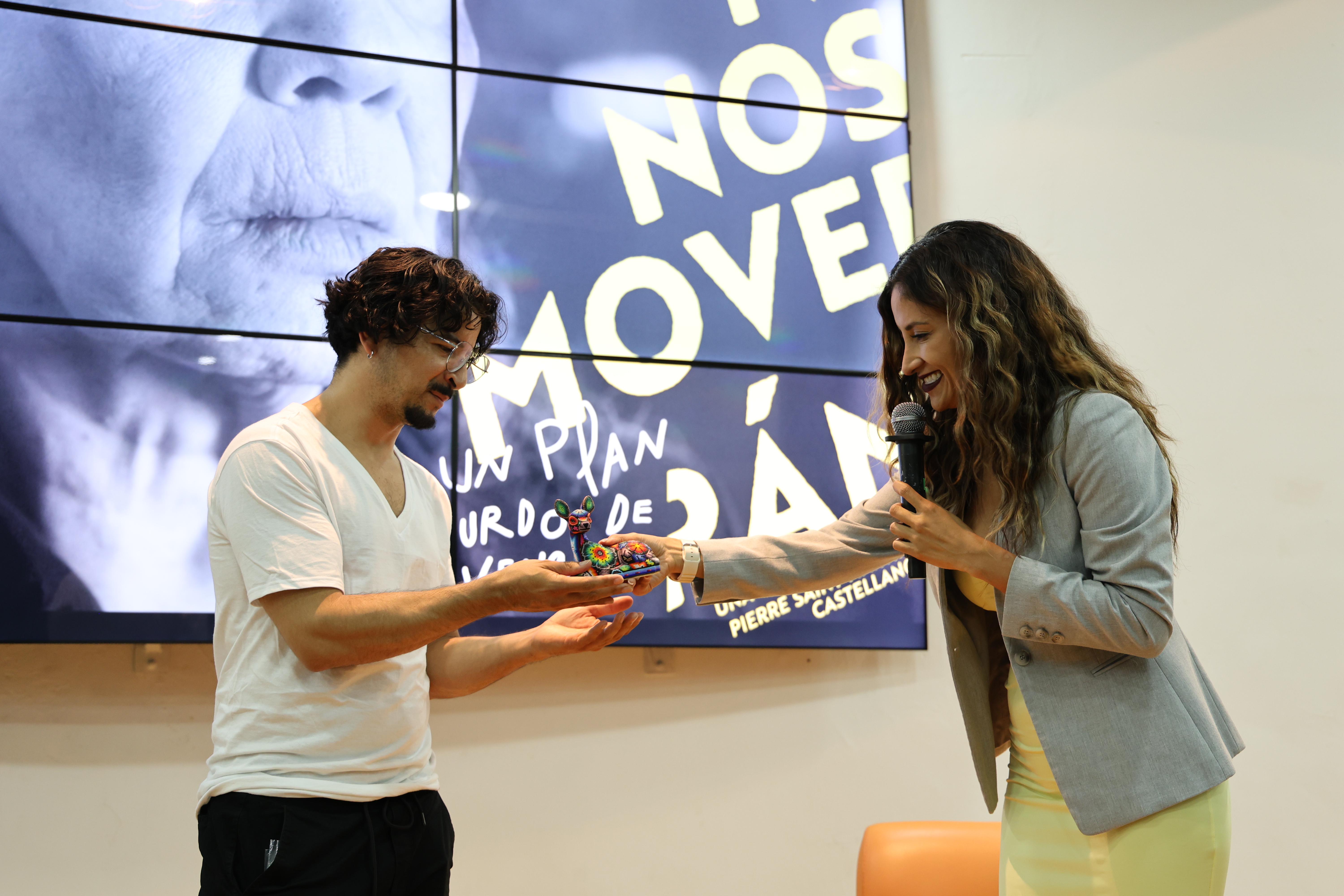 La rectora explicó que No nos moverán aborda un movimiento estudiantil de 1968 en México, específicamente de residentes de medicina que luchaban por derechos y seguridad social. La Rectora le regaló una figura de venado con intervención artística wixárika. Tras sus palabras, se procedió a la presentación formal del filme.