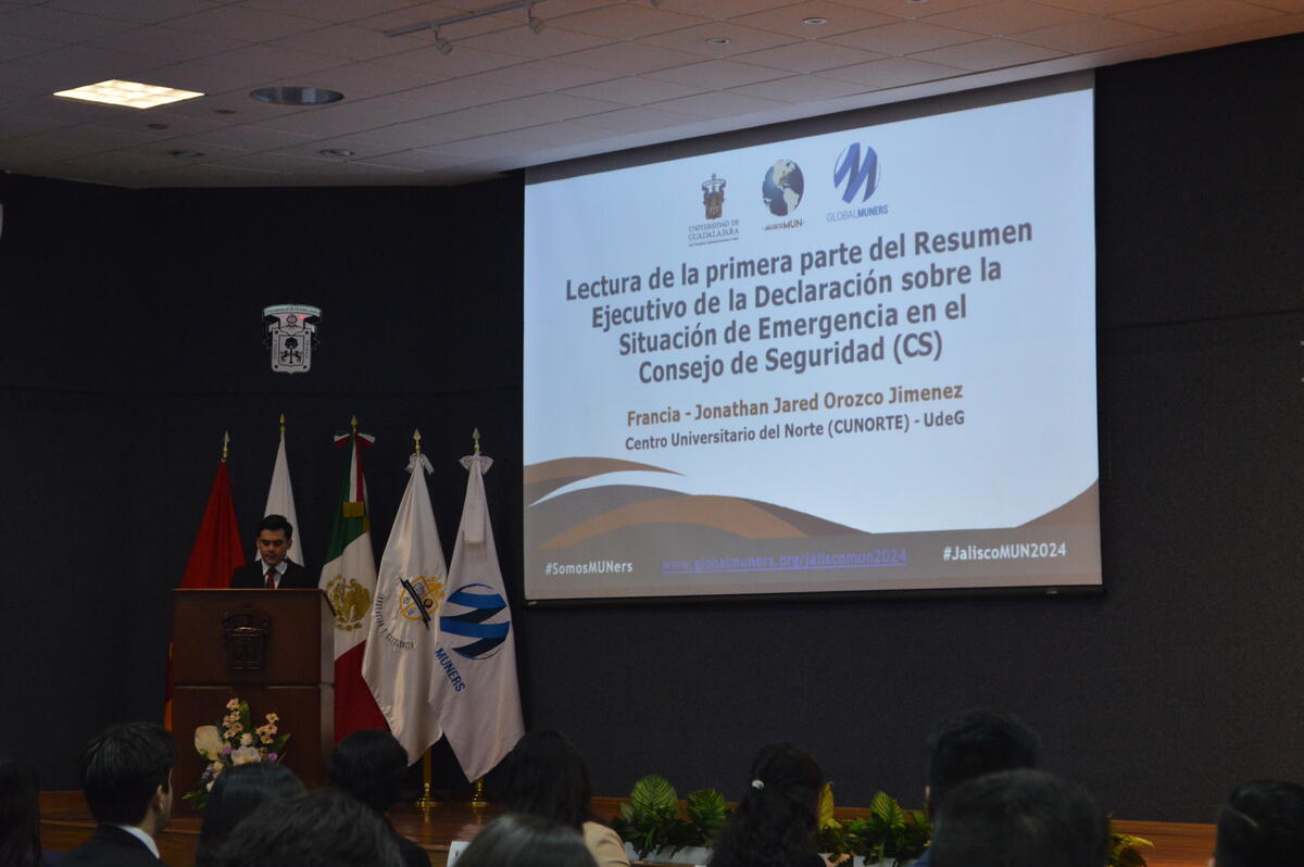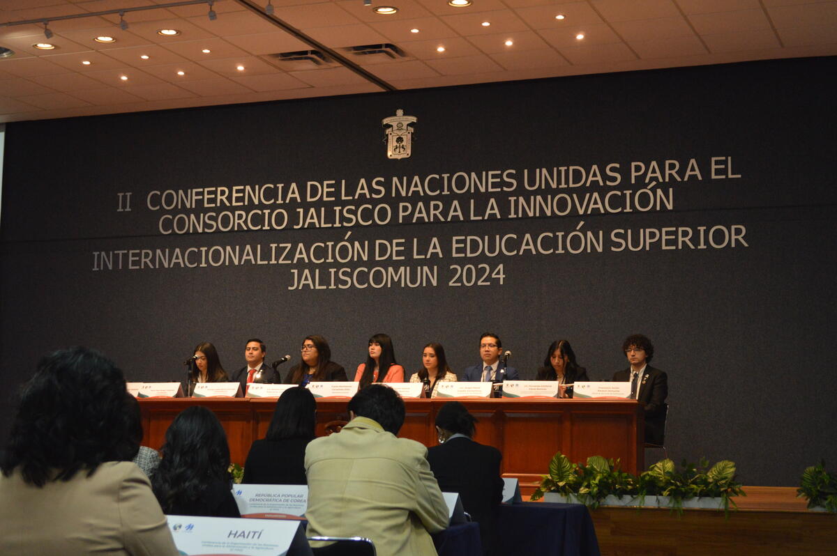 En el JALISCOMUN 2024, estudiantes de la Universidad de Guadalajara (UdeG), Universidad de Guanajuato (UG) y la Universidad Autónoma de Guadalajara (UAG) representaron a 19 países, debatiendo temas clave de la agenda internacional en las sesiones del Consejo de Seguridad, la Asamblea Mundial de la Salud y la Organización de las Naciones Unidas para la Alimentación y la Agricultura (FAO).