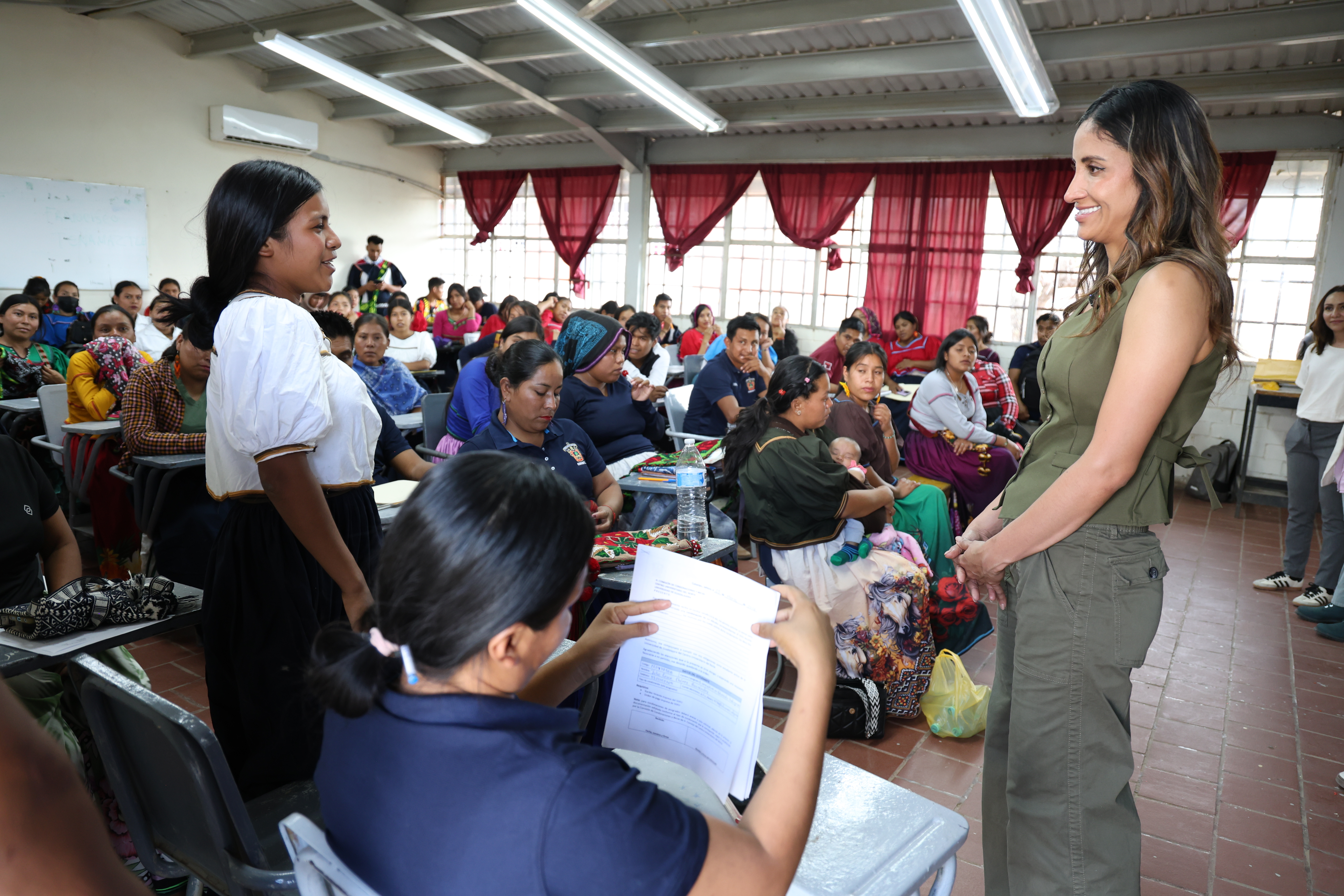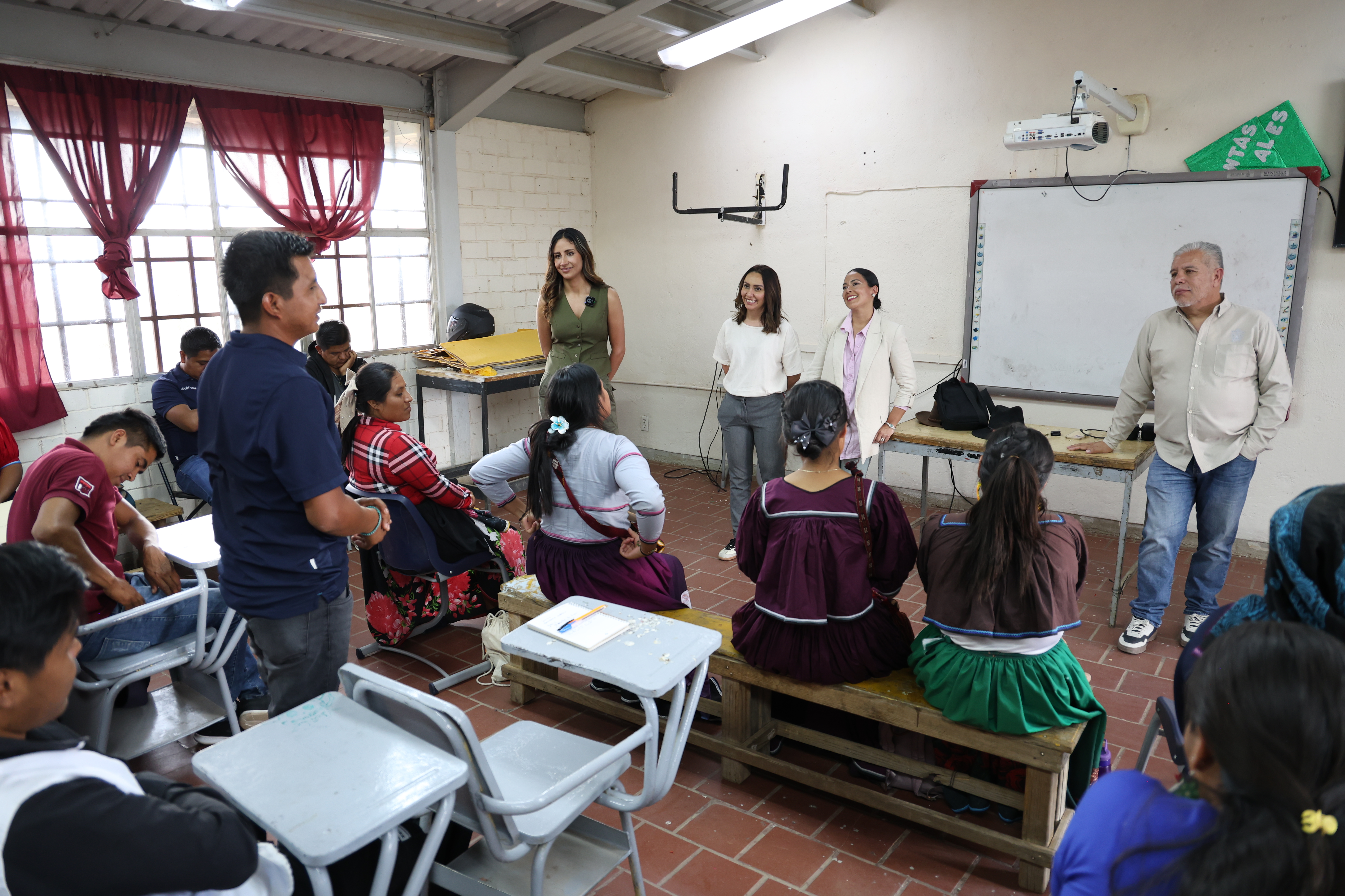 Durante el recorrido se revisaron los avances de infraestructura y, de manera prioritaria, se sostuvo un diálogo cercano con estudiantes wixaritari de las licenciaturas en Educación Indígena y Enfermería, con el propósito de escuchar sus necesidades, fortalecer acuerdos y reafirmar el acompañamiento institucional.