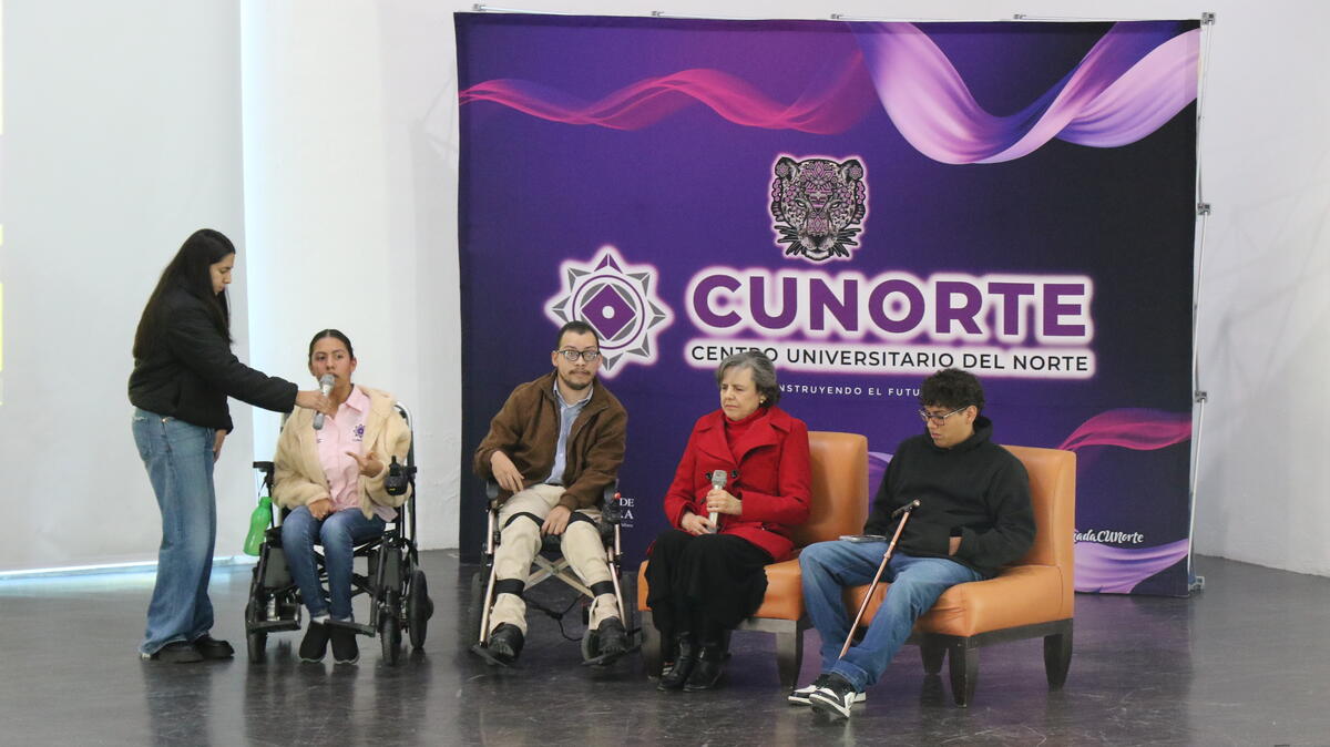 En el conversatorio participaron Valeria Fernanda Durán Gómez, alumna de la Licenciatura en Educación, así como Luis Alejandro Vázquez Pérez y Derek Alexander Borrayo García, alumnos del CUNorte, quienes compartieron sus vivencias cotidianas en la universidad. El encuentro fue moderado por la Lic. Norma Márquez Ávila, integrante de la Red para la Defensa de las Personas con Discapacidad en América Latina y autora del libro “Abriendo los ojos de los que ven”.
