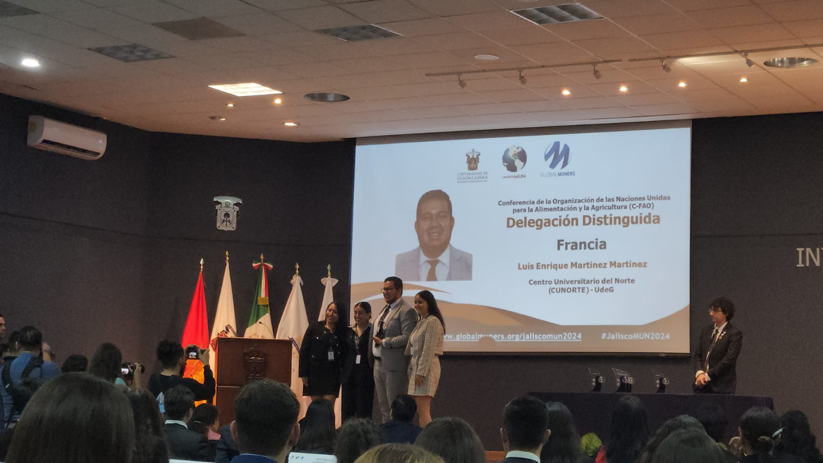 • 2º lugar en Delegación Distinguida – C-FAO: Luis Enrique Martínez Martínez (Licenciatura en Contaduría Pública), representando a Francia en la Conferencia de la FAO, fue reconocido por su excepcional desempeño.
