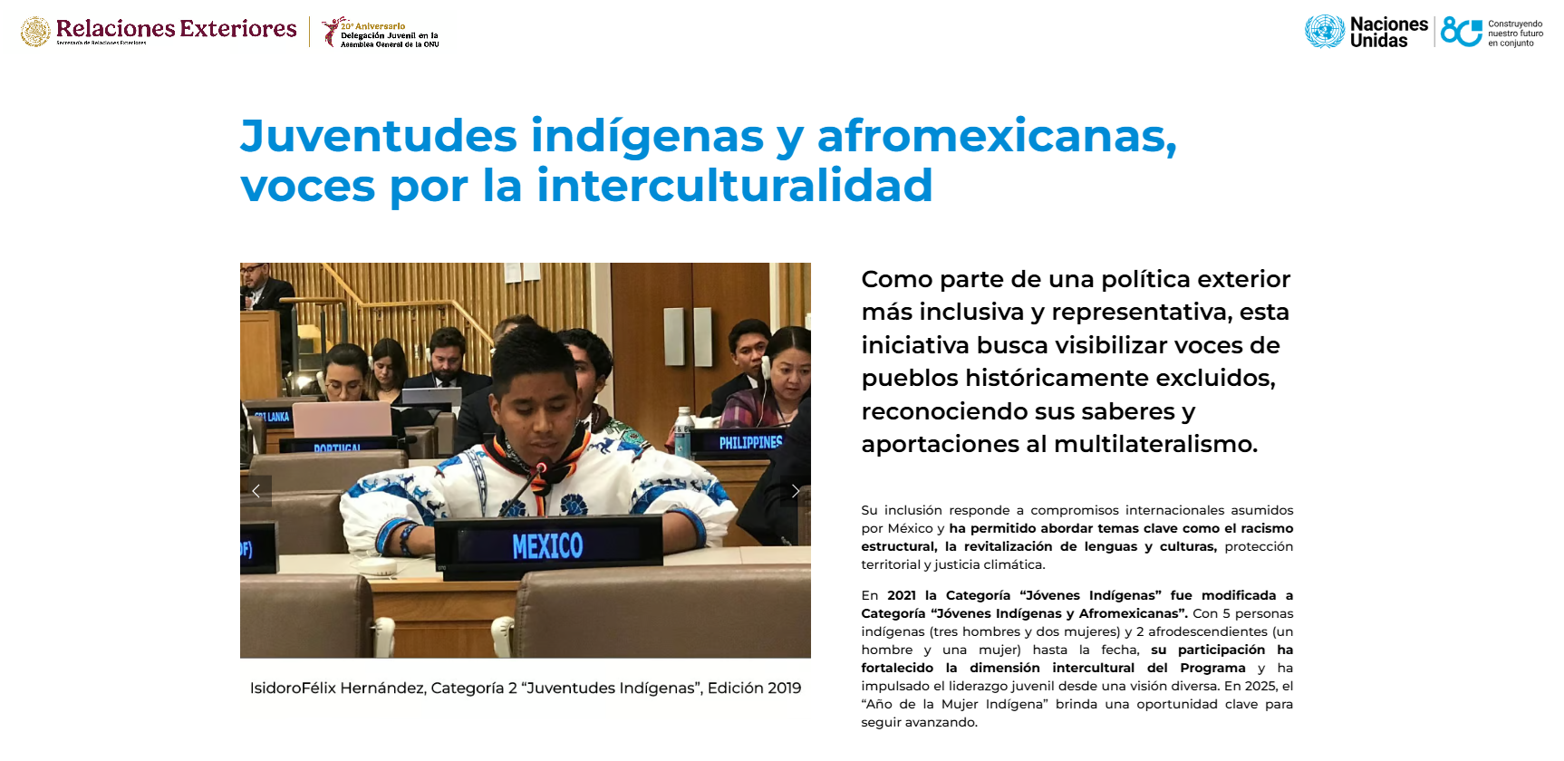 De acuerdo con el sitio oficial del programa, esta iniciativa “busca visibilizar voces de pueblos históricamente excluidos, reconociendo sus saberes y aportaciones al multilateralismo. Su inclusión responde a compromisos internacionales asumidos por México y ha permitido abordar temas clave como el racismo estructural, la revitalización de lenguas y culturas, la protección territorial y la justicia climática”.
