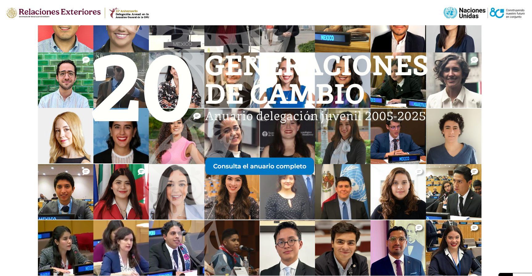 Como parte de la conmemoración de este aniversario, se inauguró la exposición fotográfica “Juventudes mexicanas que inspiran: 20 años iluminando el multilateralismo desde la ONU”, el 1 de octubre de 2025, en la Sala 3 del Instituto Matías Romero (CDMX). La muestra fue organizada por la Secretaría de Relaciones Exteriores (SRE), a través de la Dirección General de Vinculación con las Organizaciones de la Sociedad Civil y el Museo de la Cancillería, en colaboración con el Centro de Información de las Naciones Unidas para México, Cuba y República Dominicana.